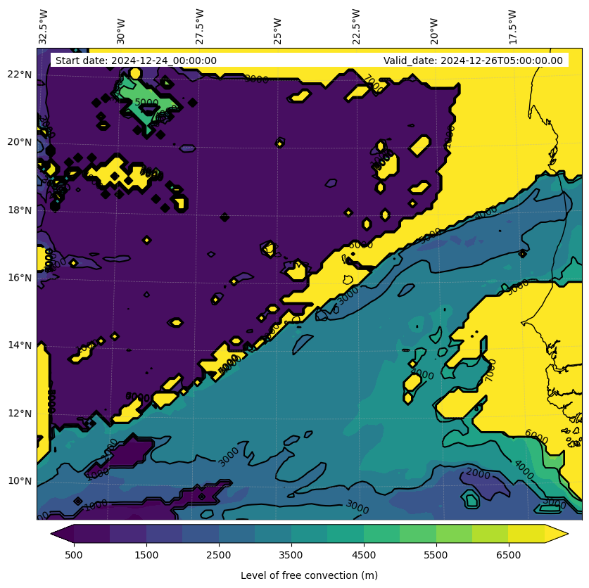 - Level of free convection (m)