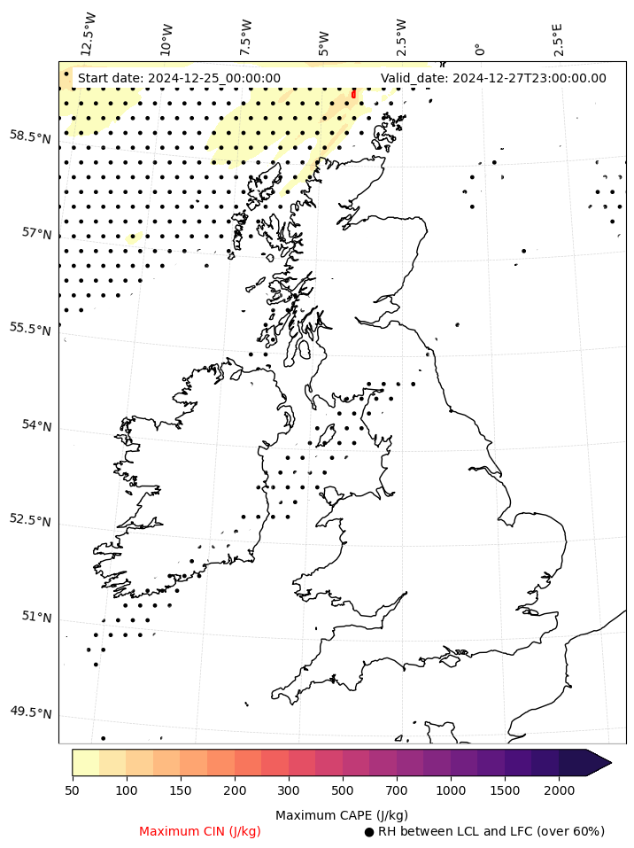 - Maximum CAPE (J/Kg)
