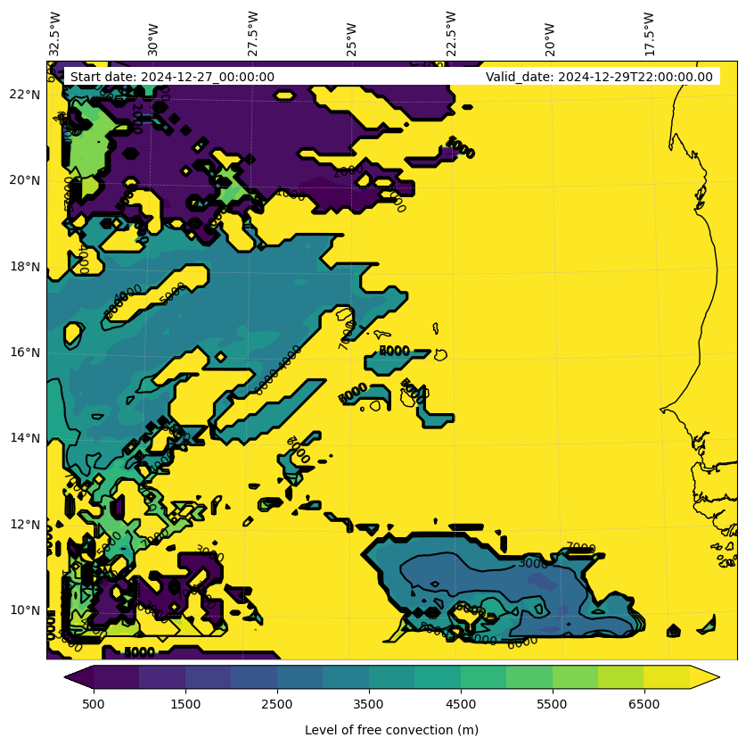 - Level of free convection (m)