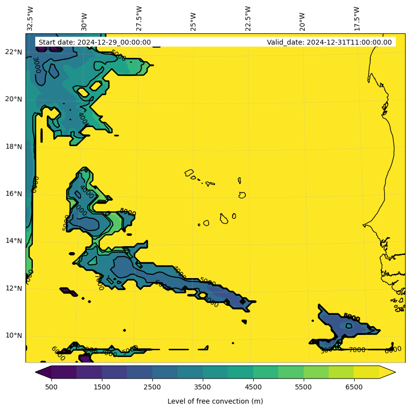 - Level of free convection (m)