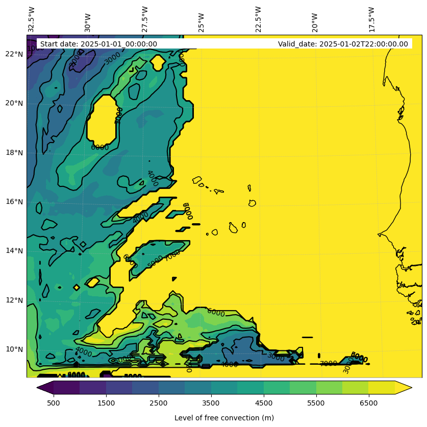 - Level of free convection (m)