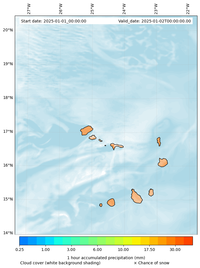 - Snow mixing ratio (g kg¯¹)