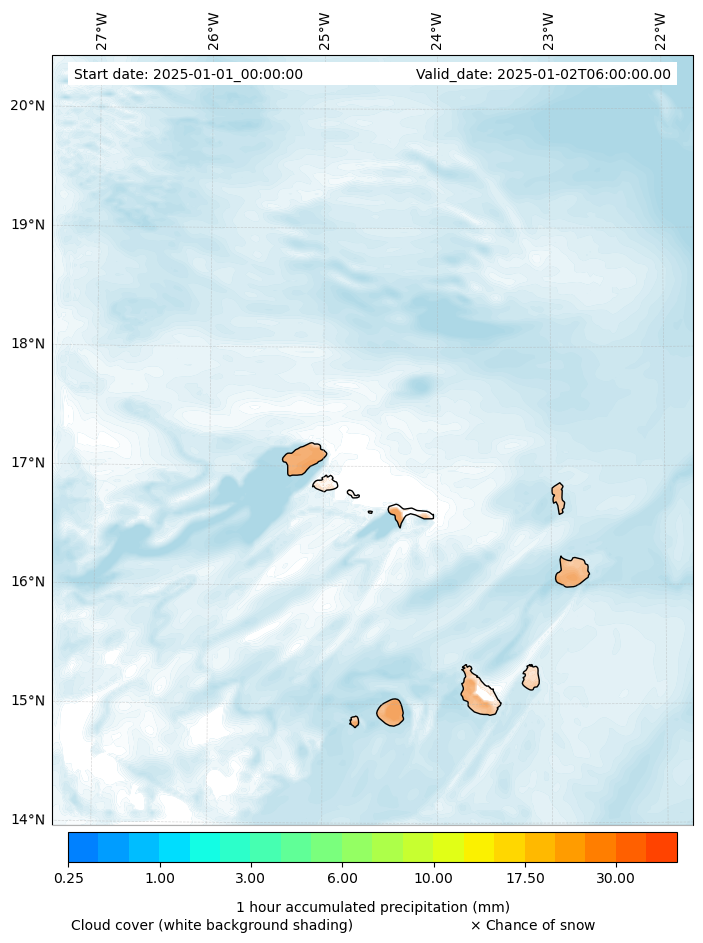 - Snow mixing ratio (g kg¯¹)