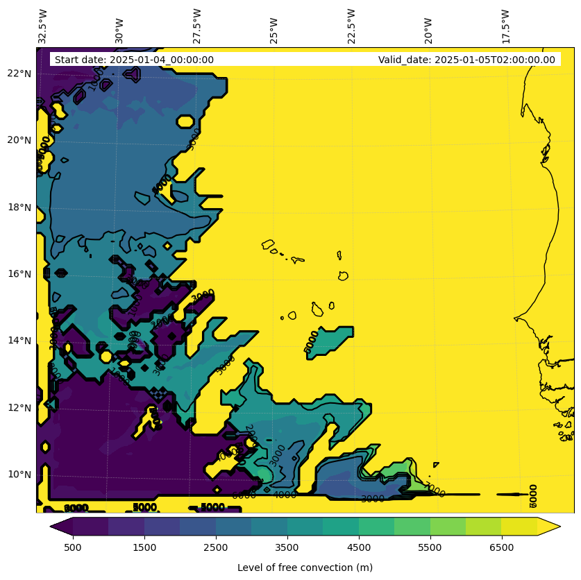 - Level of free convection (m)