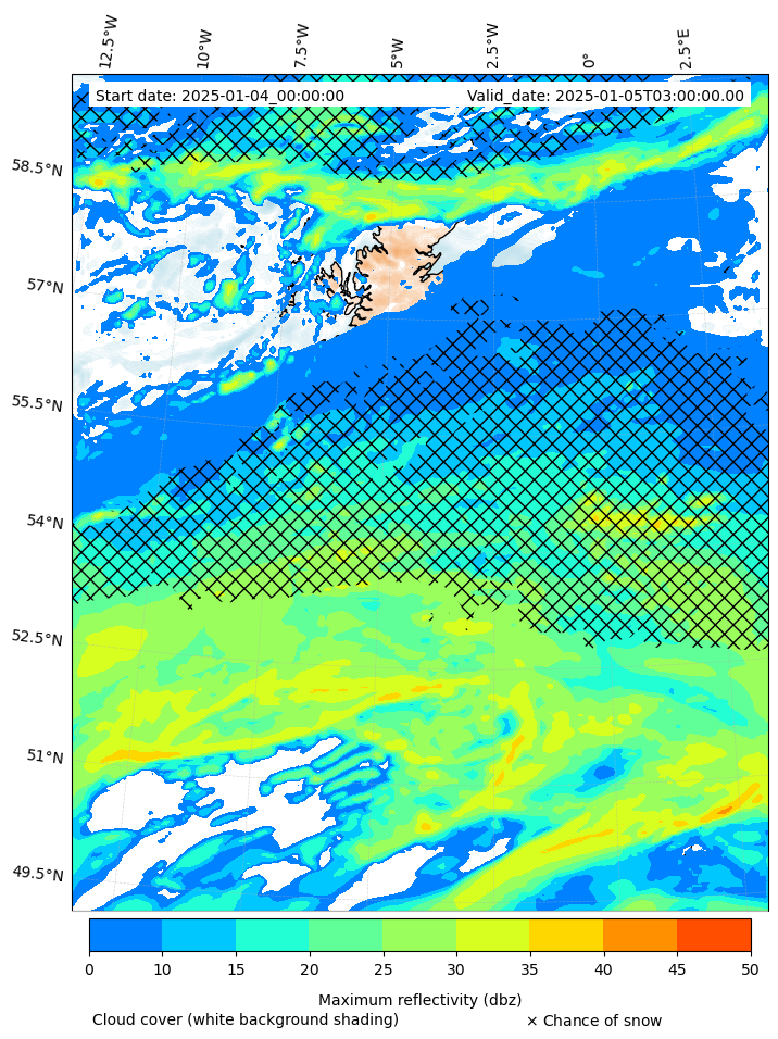 - Snow mixing ratio (g kg¯¹)