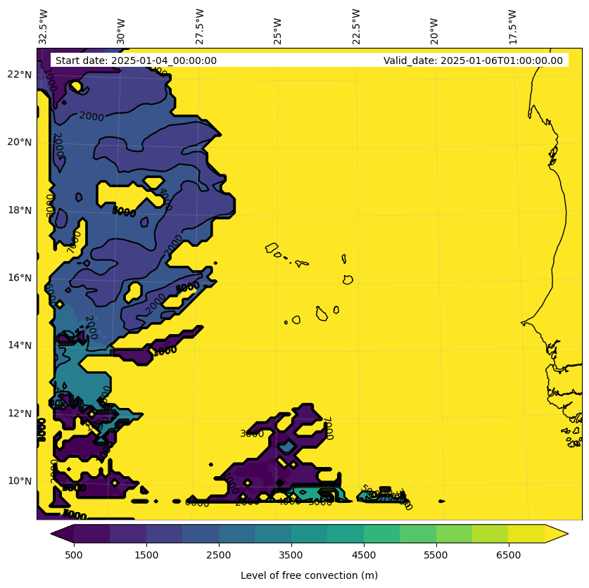 - Level of free convection (m)