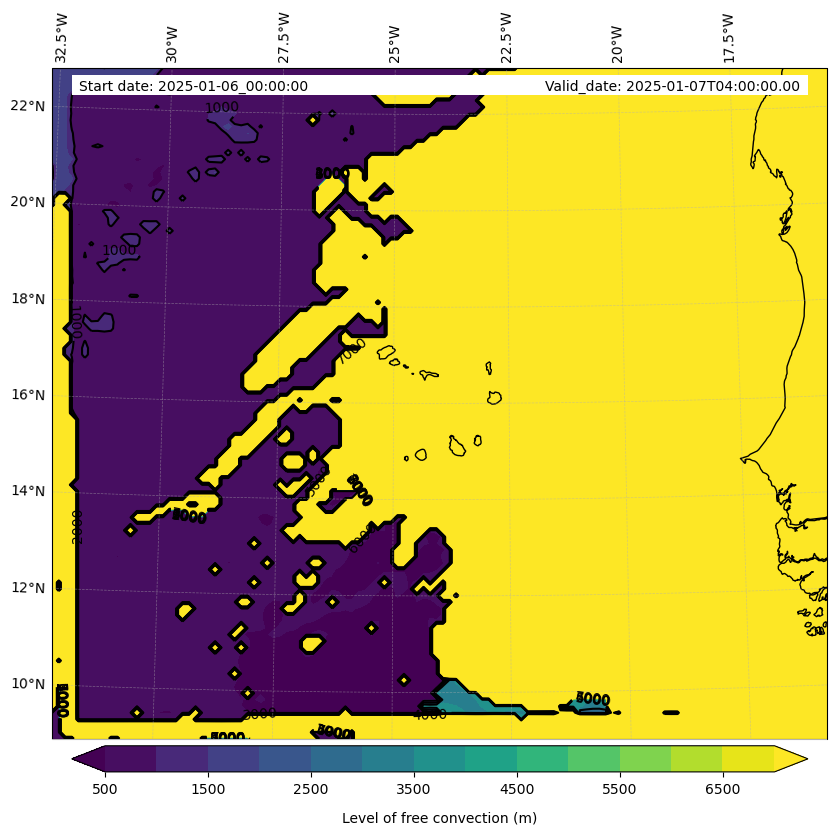 - Level of free convection (m)