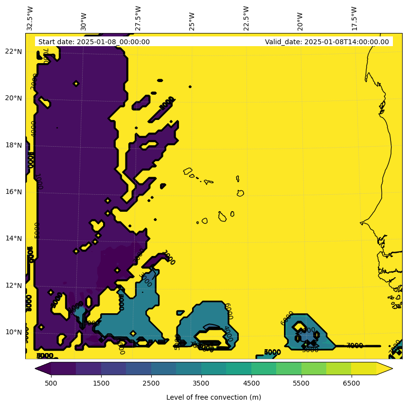 - Level of free convection (m)