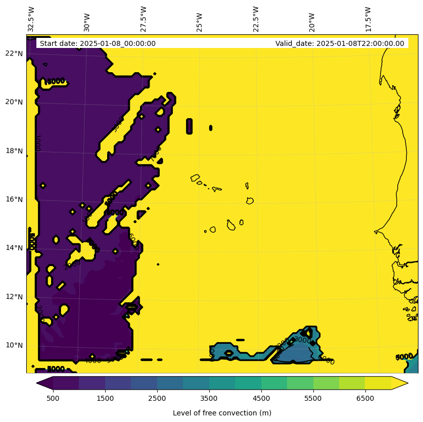 - Level of free convection (m)