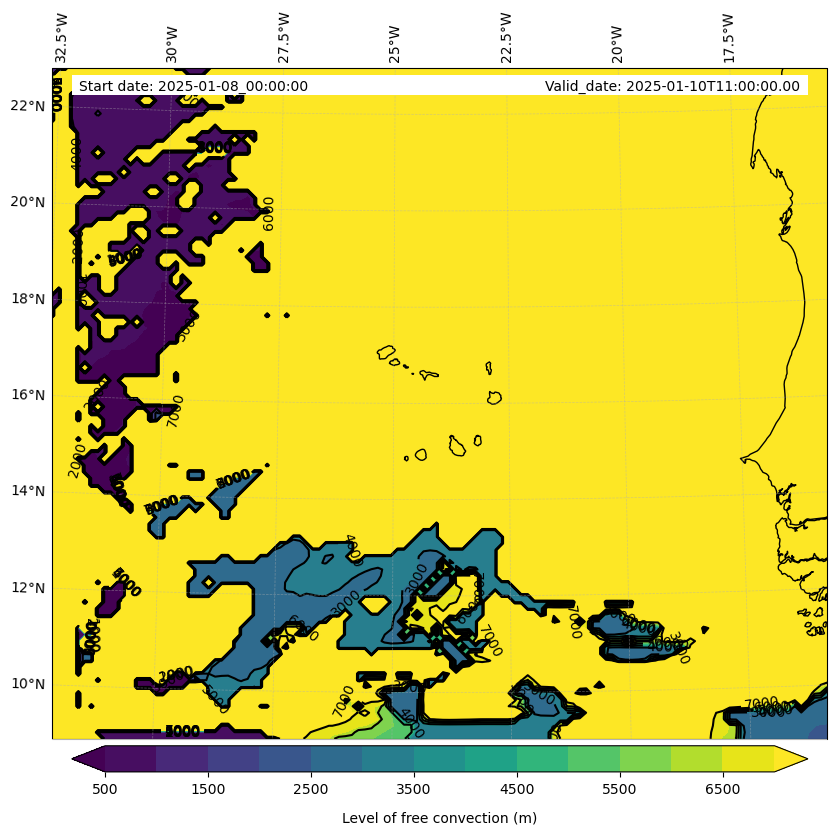 - Level of free convection (m)