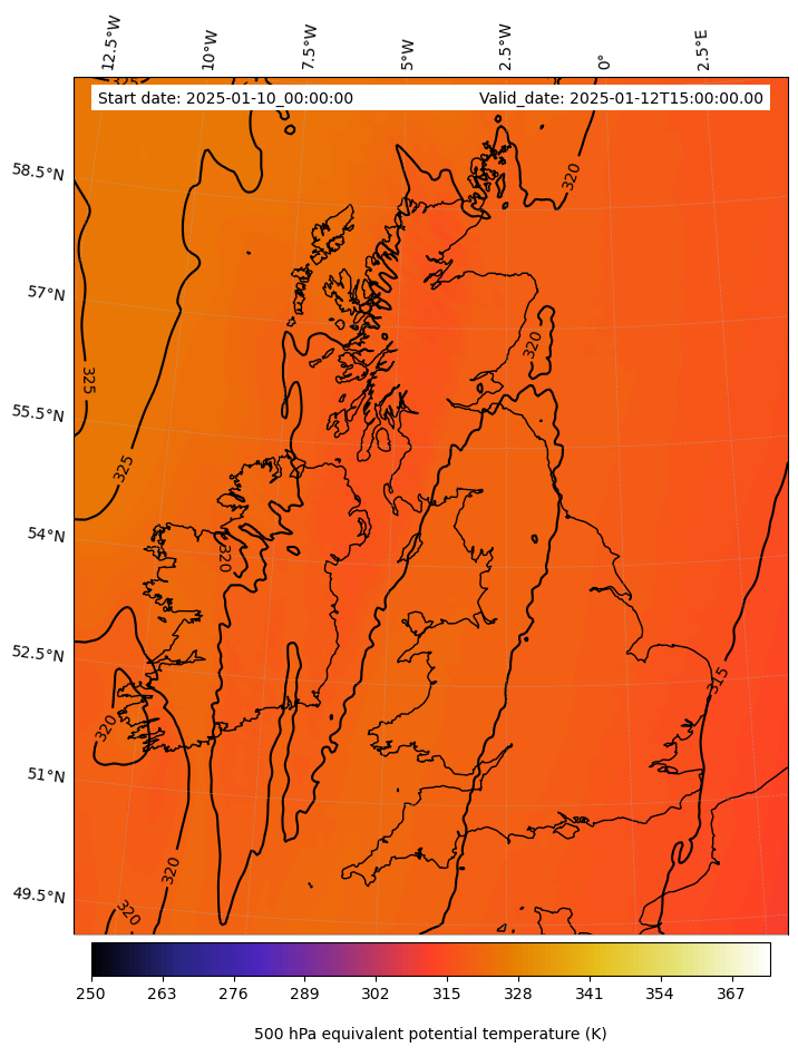 - Equivalent Potential Temperature (K)