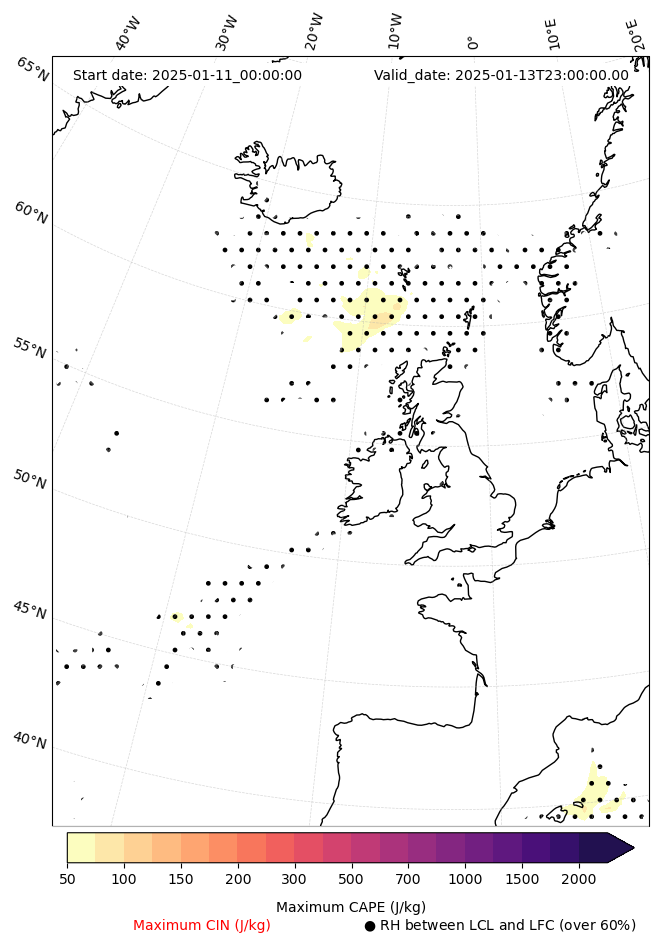 - Maximum CAPE (J/Kg)