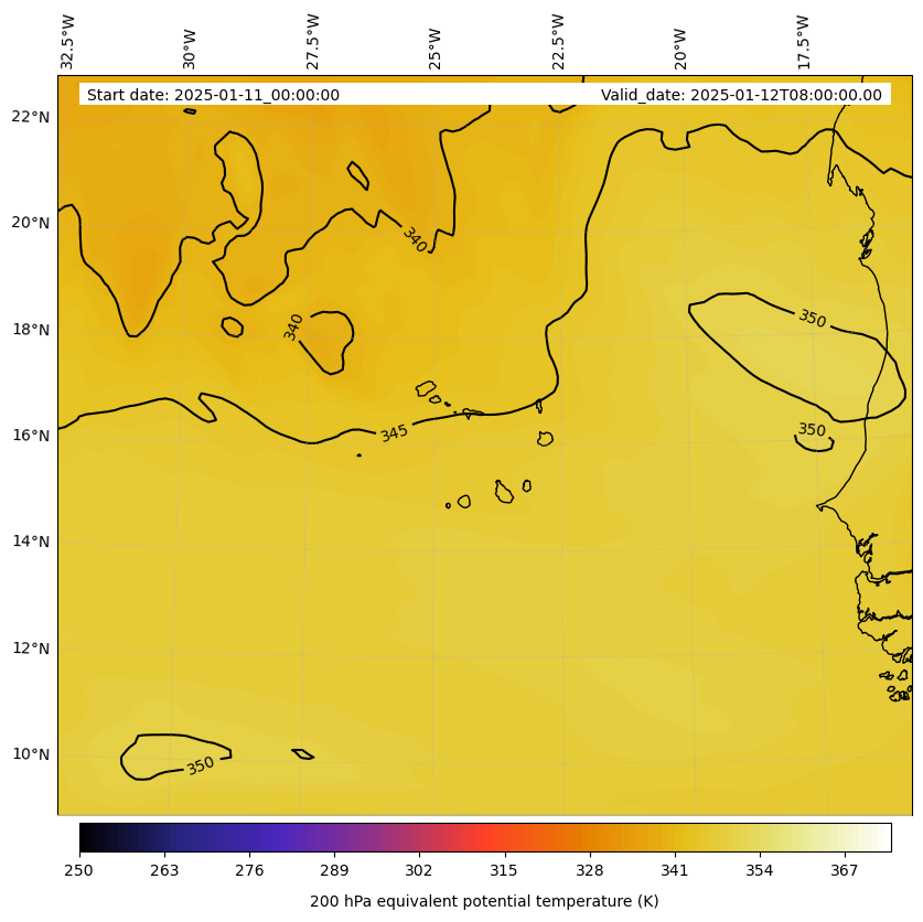 - Equivalent Potential Temperature (K)