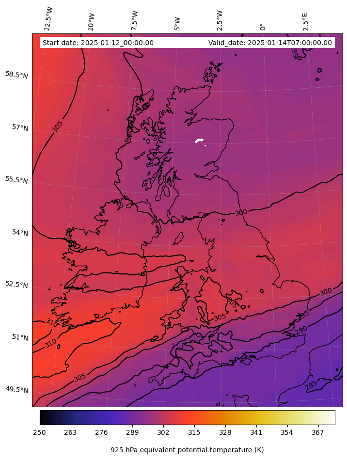 - Equivalent Potential Temperature (K)