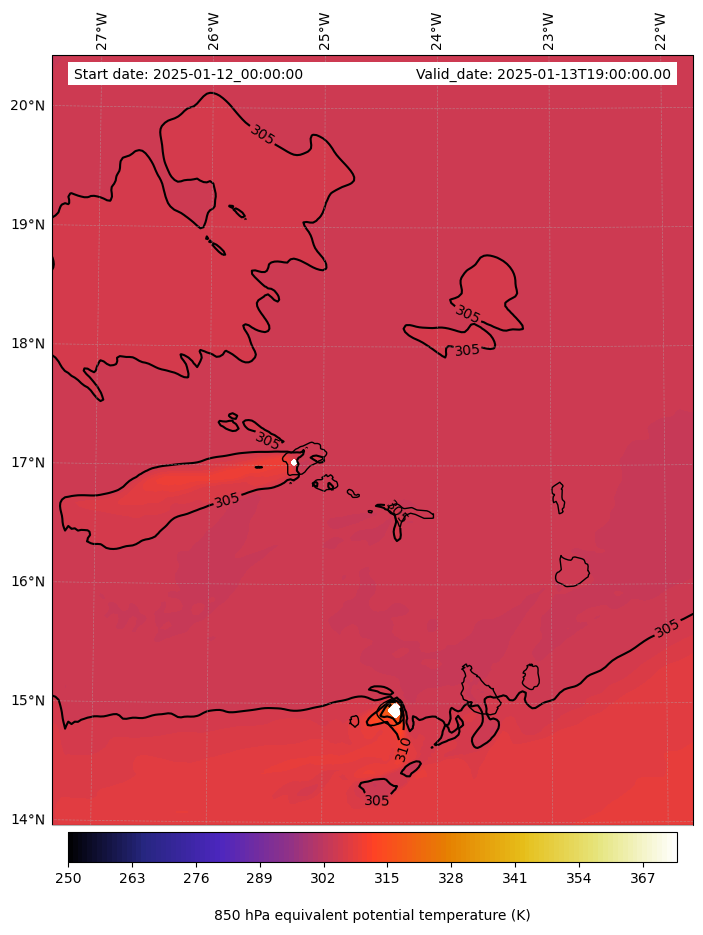 - Equivalent Potential Temperature (K)