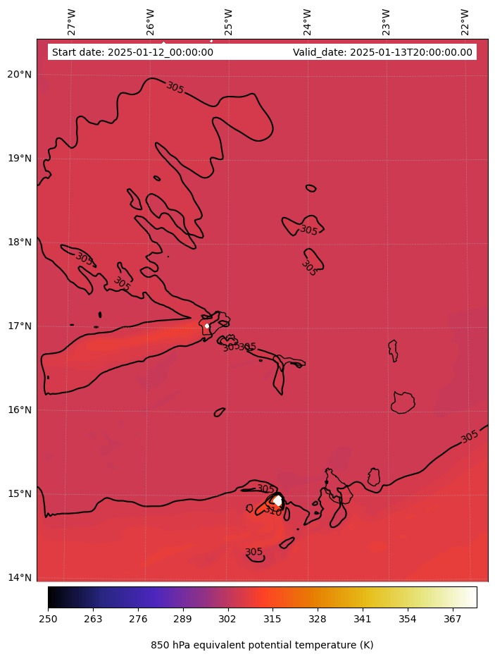 - Equivalent Potential Temperature (K)
