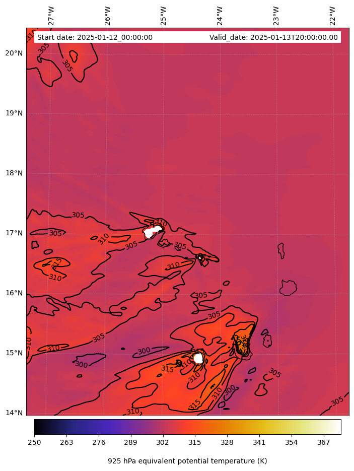 - Equivalent Potential Temperature (K)