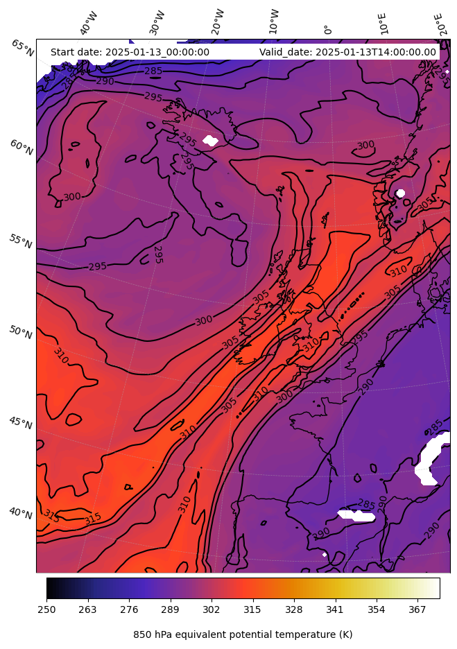 - Equivalent Potential Temperature (K)