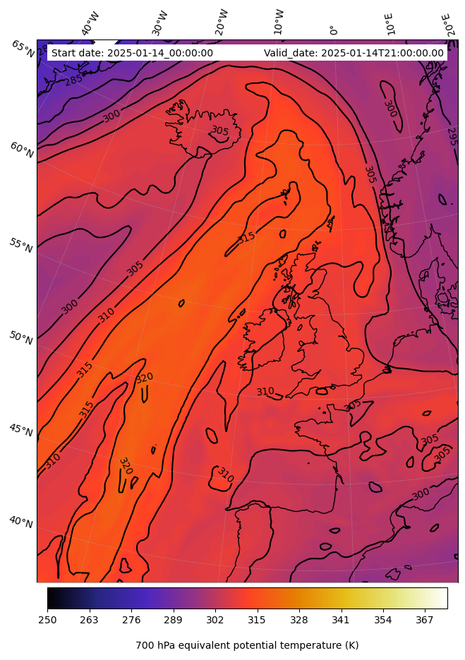 - Equivalent Potential Temperature (K)