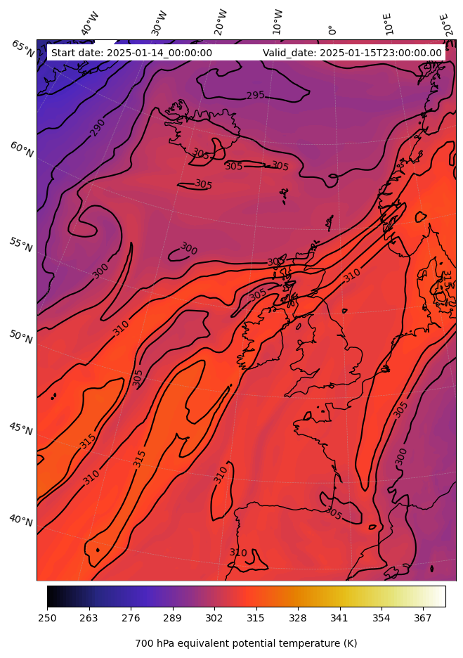 - Equivalent Potential Temperature (K)