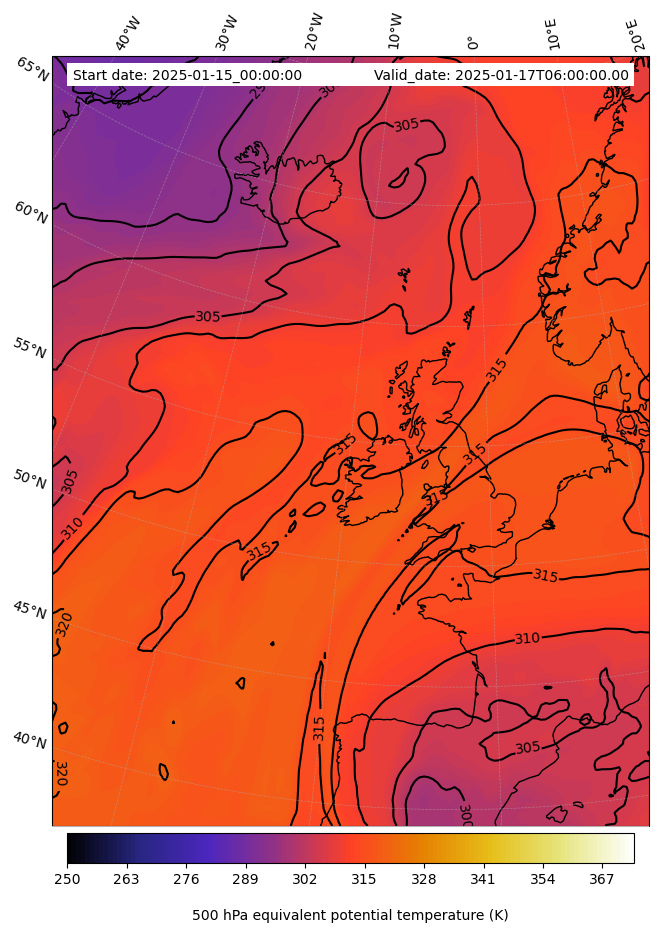 - Equivalent Potential Temperature (K)