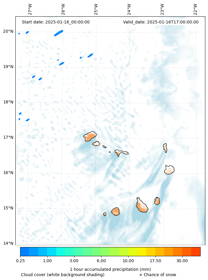 - Snow mixing ratio (g kg¯¹)