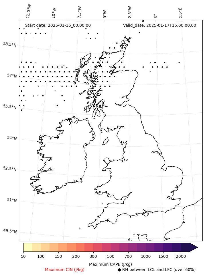- Maximum CAPE (J/Kg)