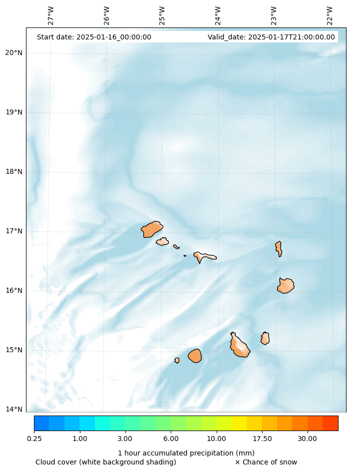 - Snow mixing ratio (g kg¯¹)