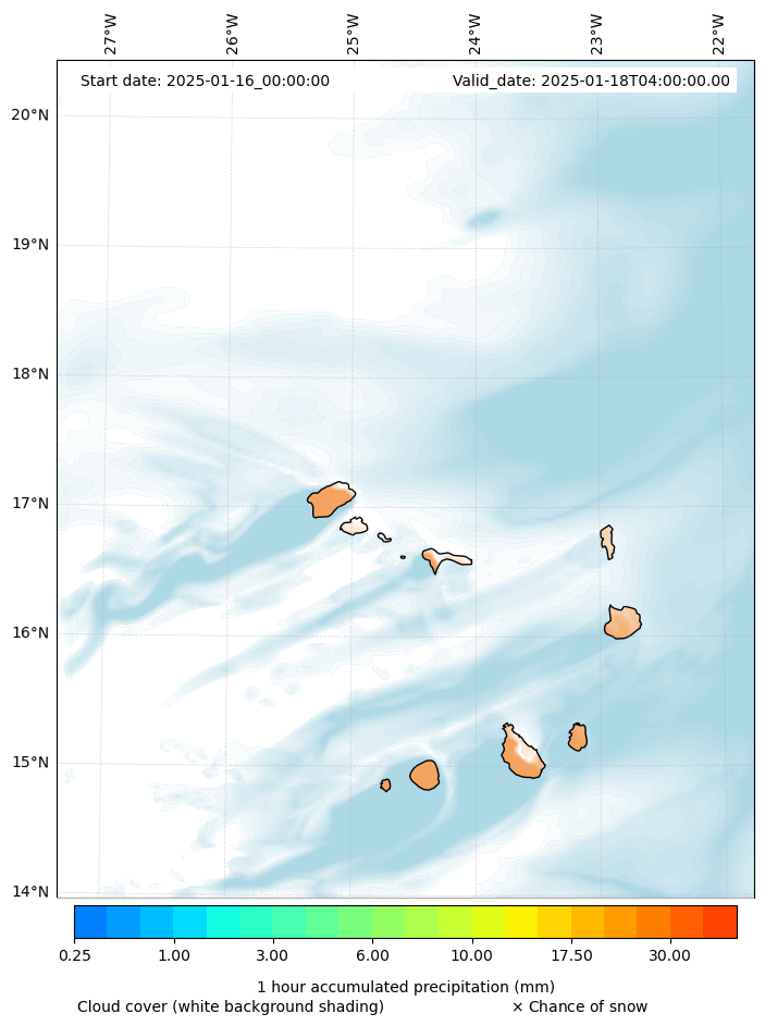 - Snow mixing ratio (g kg¯¹)