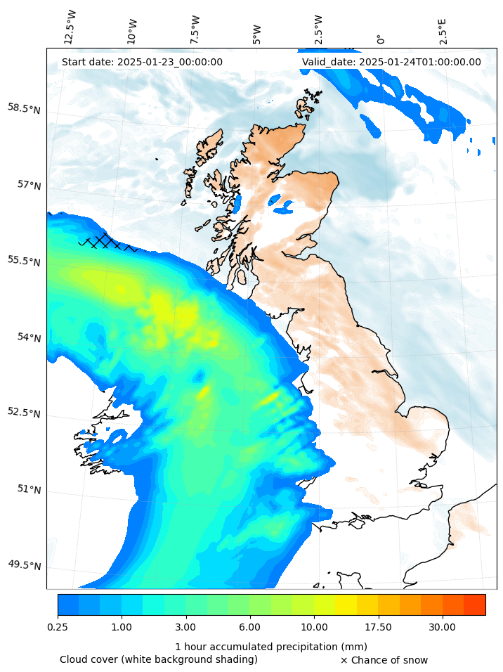 - Snow mixing ratio (g kg¯¹)