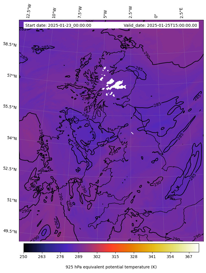 - Equivalent Potential Temperature (K)