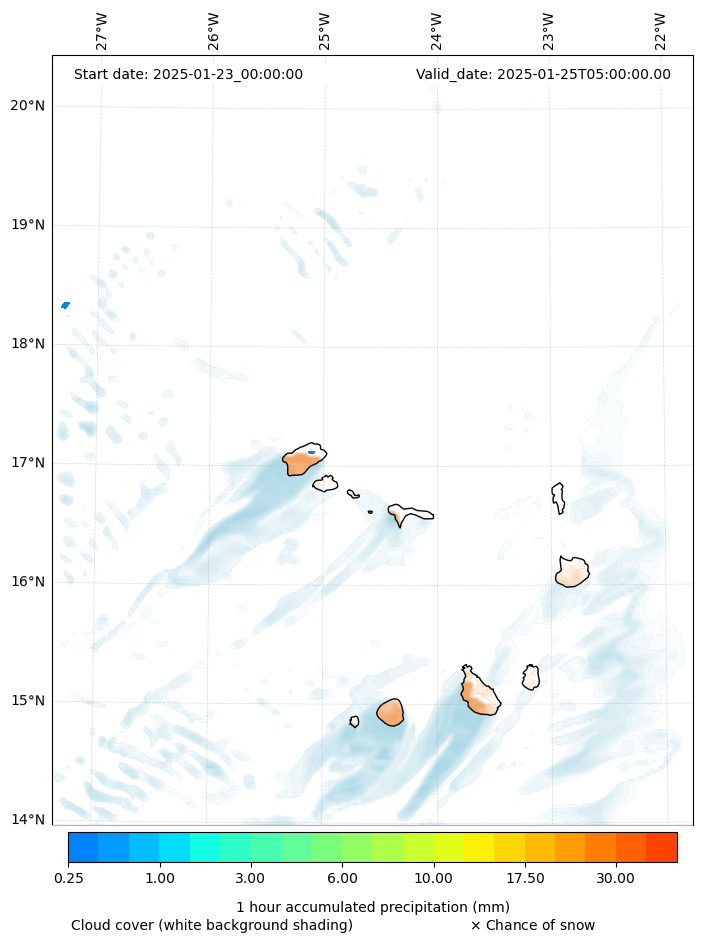 - Snow mixing ratio (g kg¯¹)