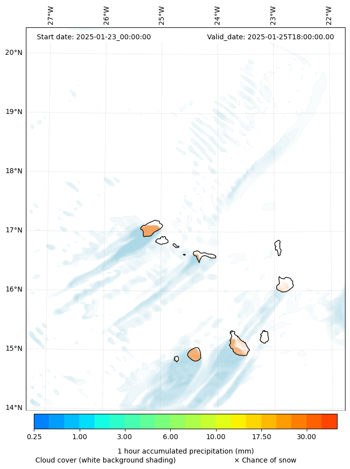- Snow mixing ratio (g kg¯¹)