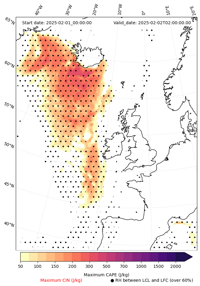 - Maximum CAPE (J/Kg)