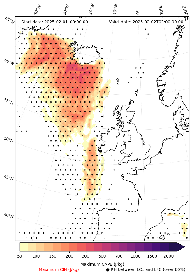 - Maximum CAPE (J/Kg)
