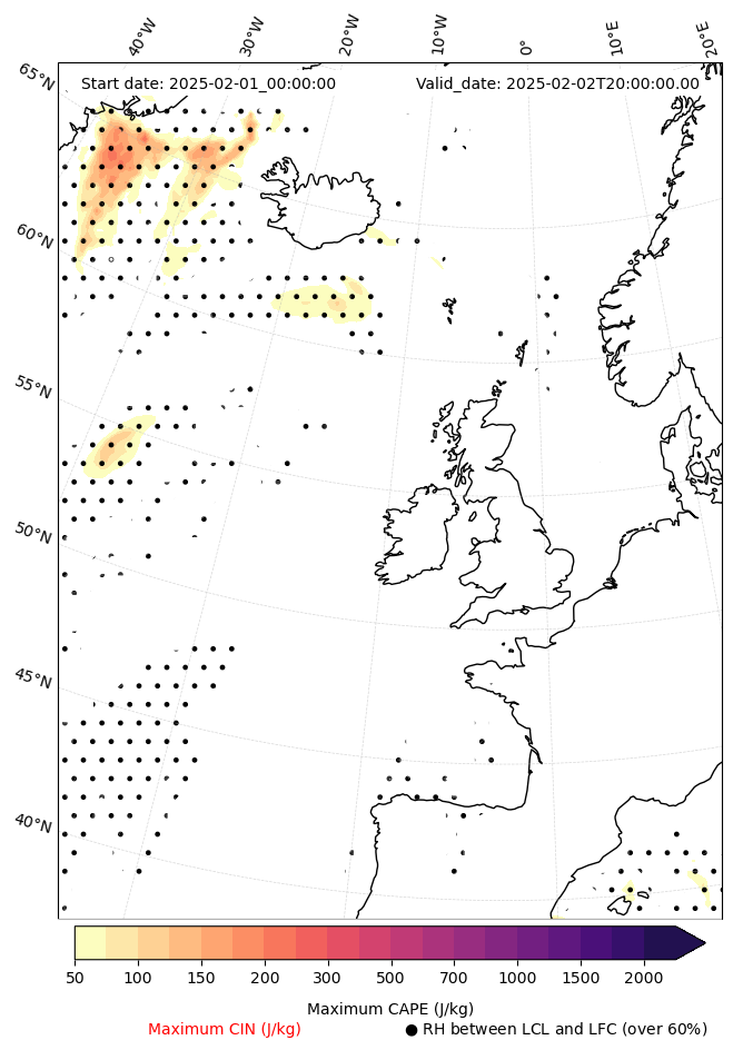 - Maximum CAPE (J/Kg)
