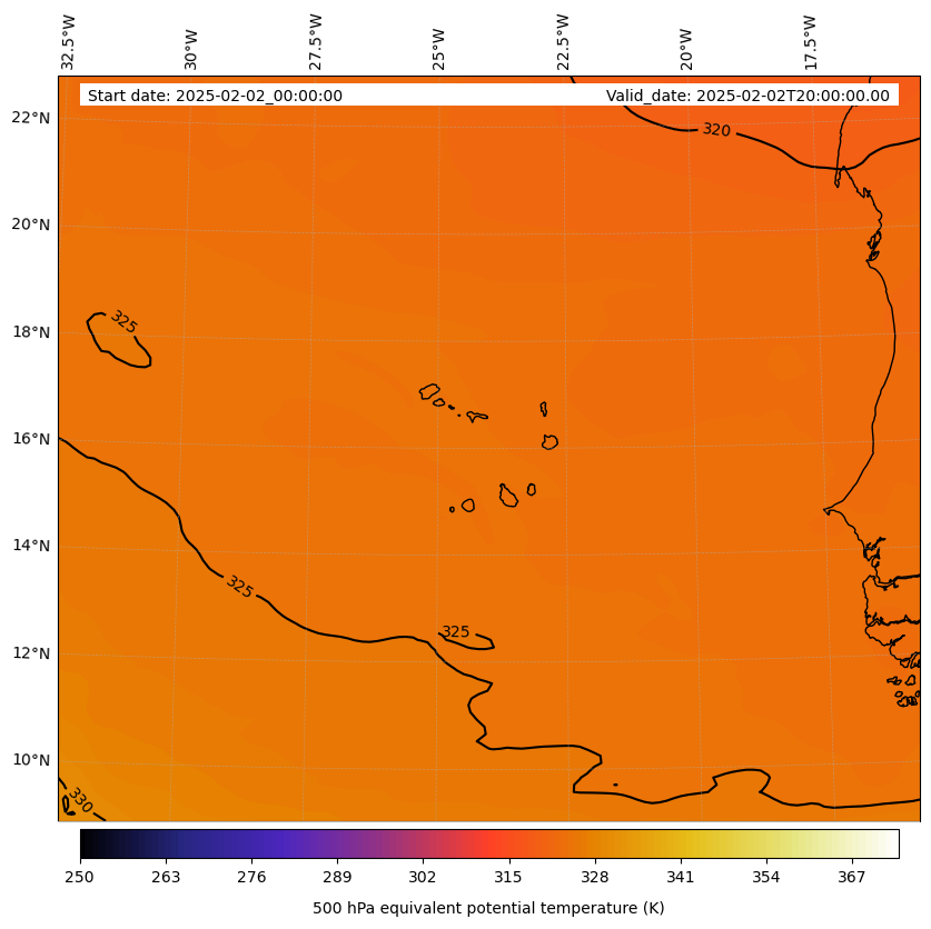 - Equivalent Potential Temperature (K)