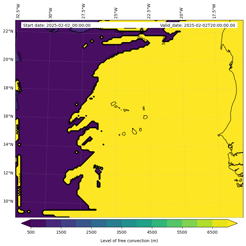 - Level of free convection (m)