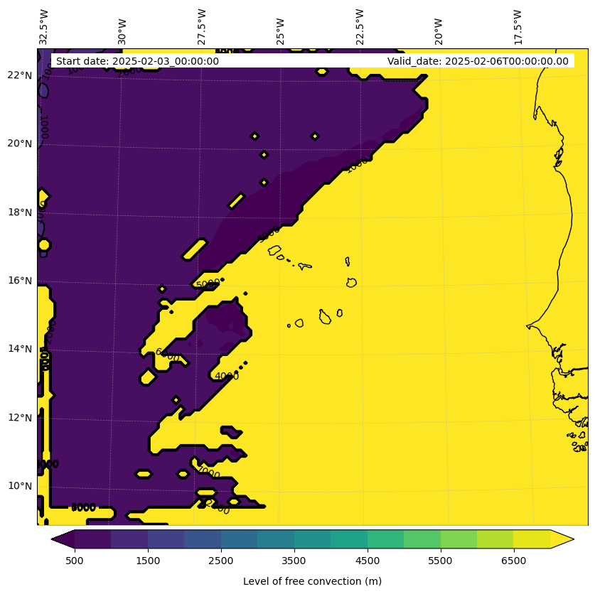 - Level of free convection (m)