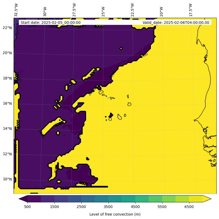- Level of free convection (m)