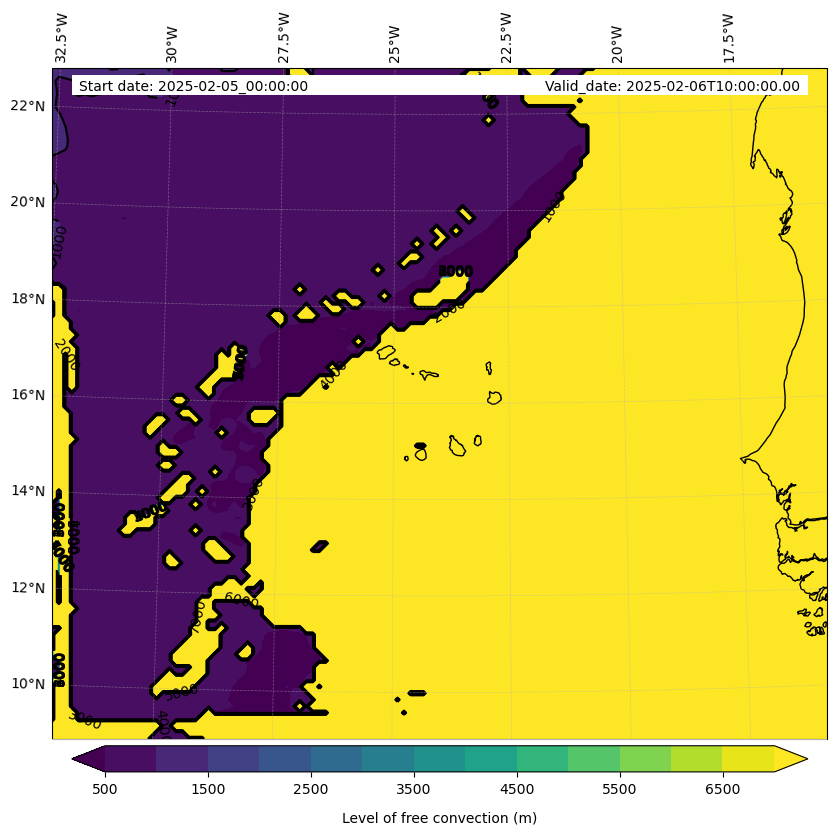 - Level of free convection (m)