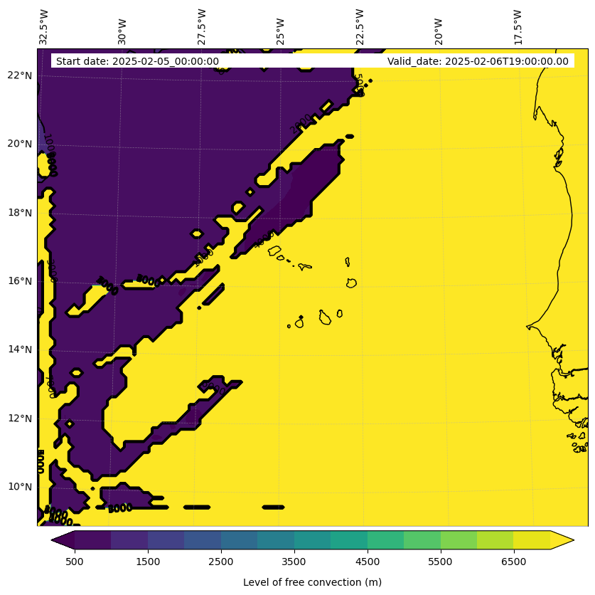 - Level of free convection (m)