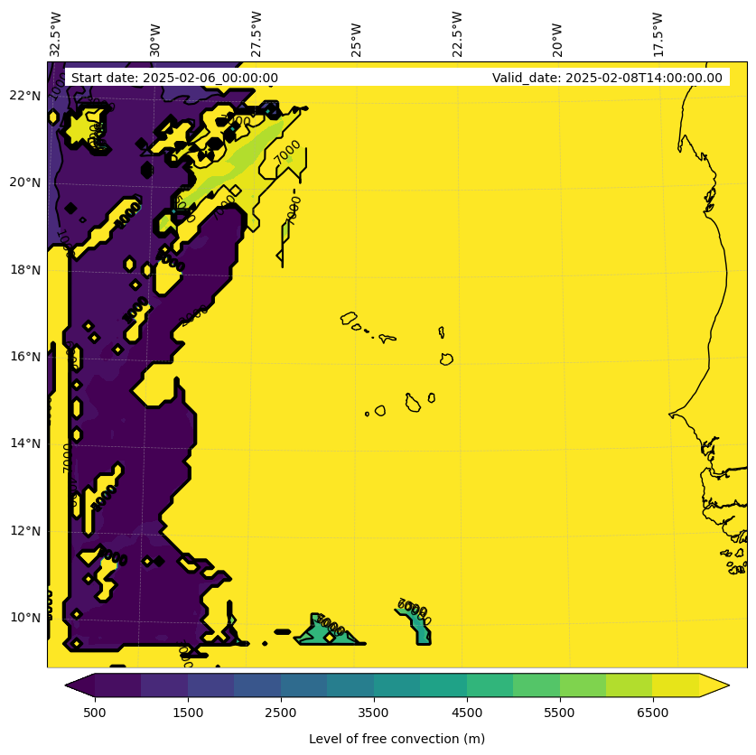 - Level of free convection (m)