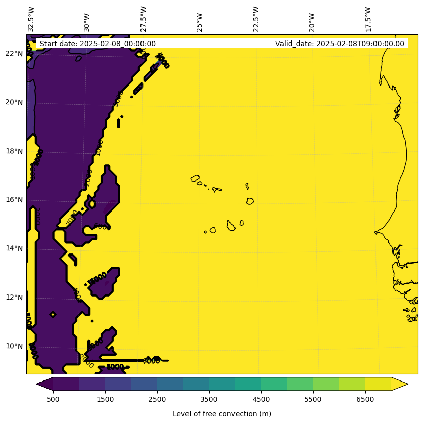 - Level of free convection (m)