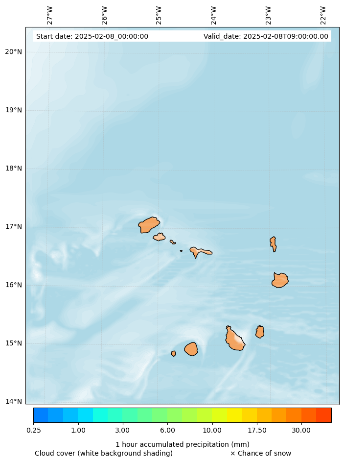 - Snow mixing ratio (g kg¯¹)