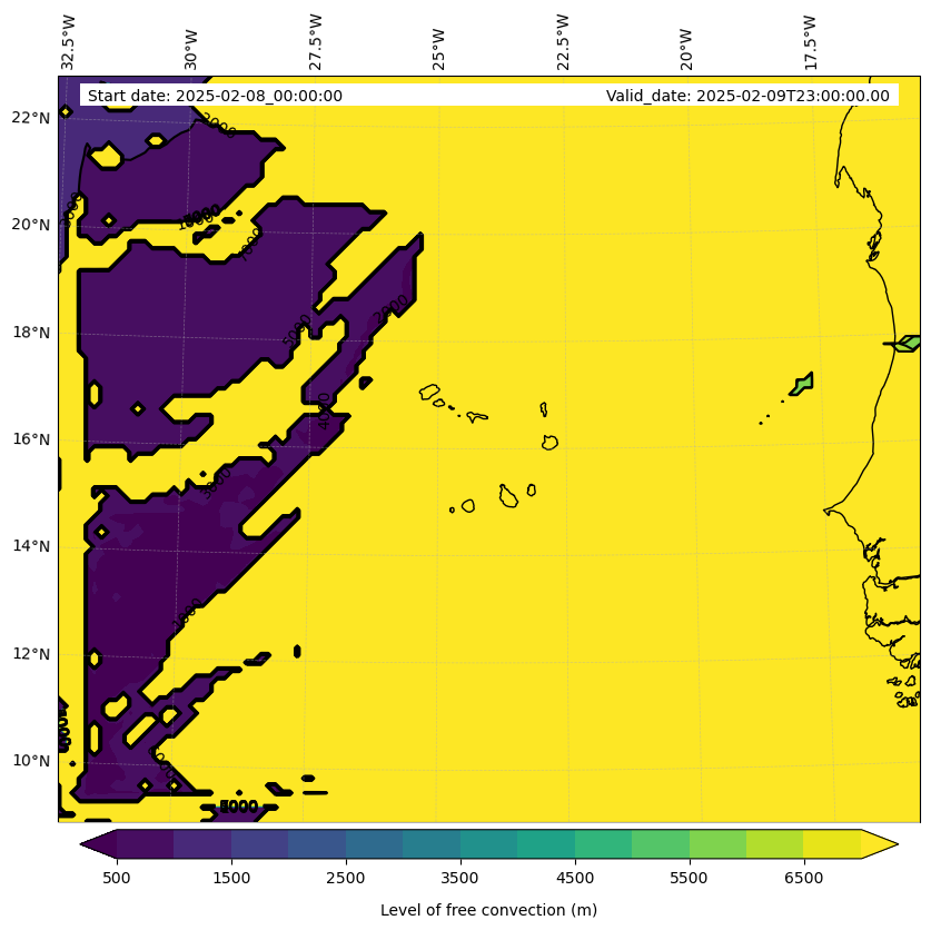 - Level of free convection (m)