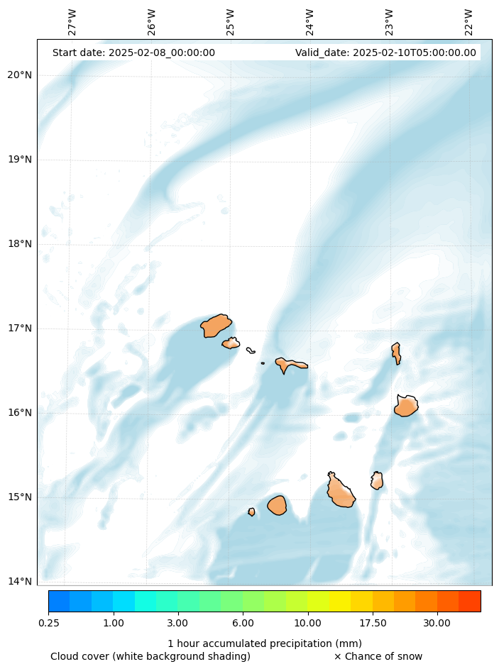 - Snow mixing ratio (g kg¯¹)