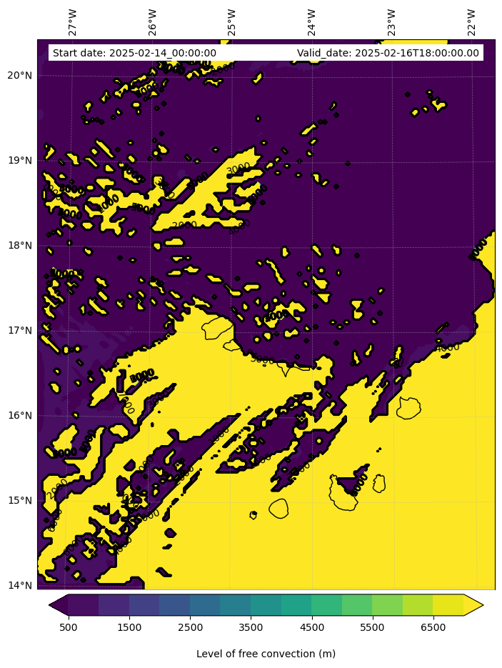 - Level of free convection (m)