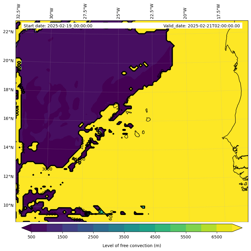 - Level of free convection (m)