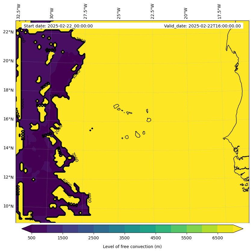 - Level of free convection (m)